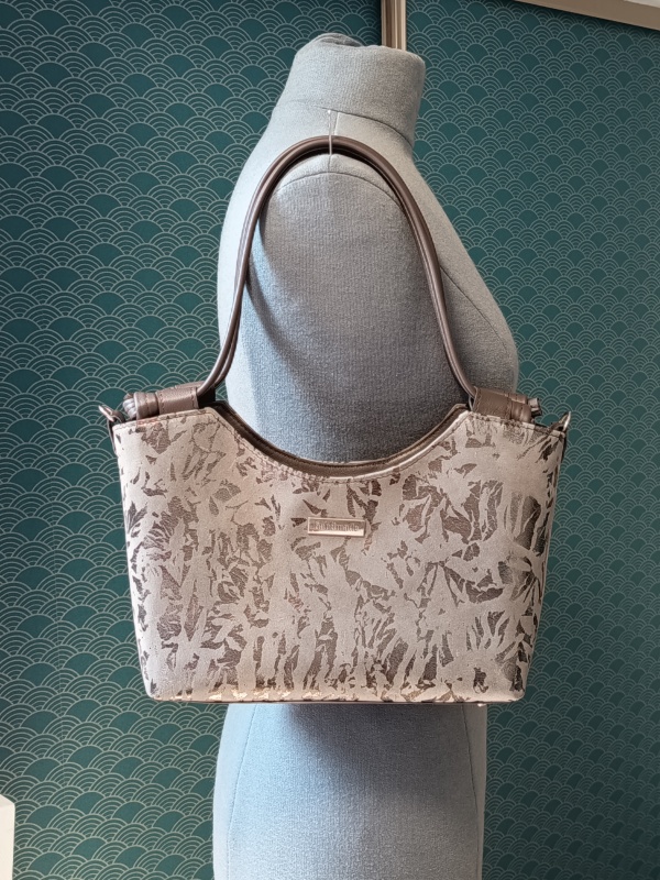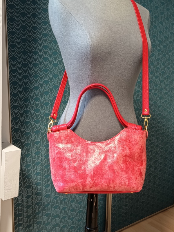 Fondez pour ce magnifique sac original par sa forme. Ce sac se porte élégamment à l’épaule, grâce à ses bretelles, mais peut aussi se porter en bandoulière pour plus de praticité.